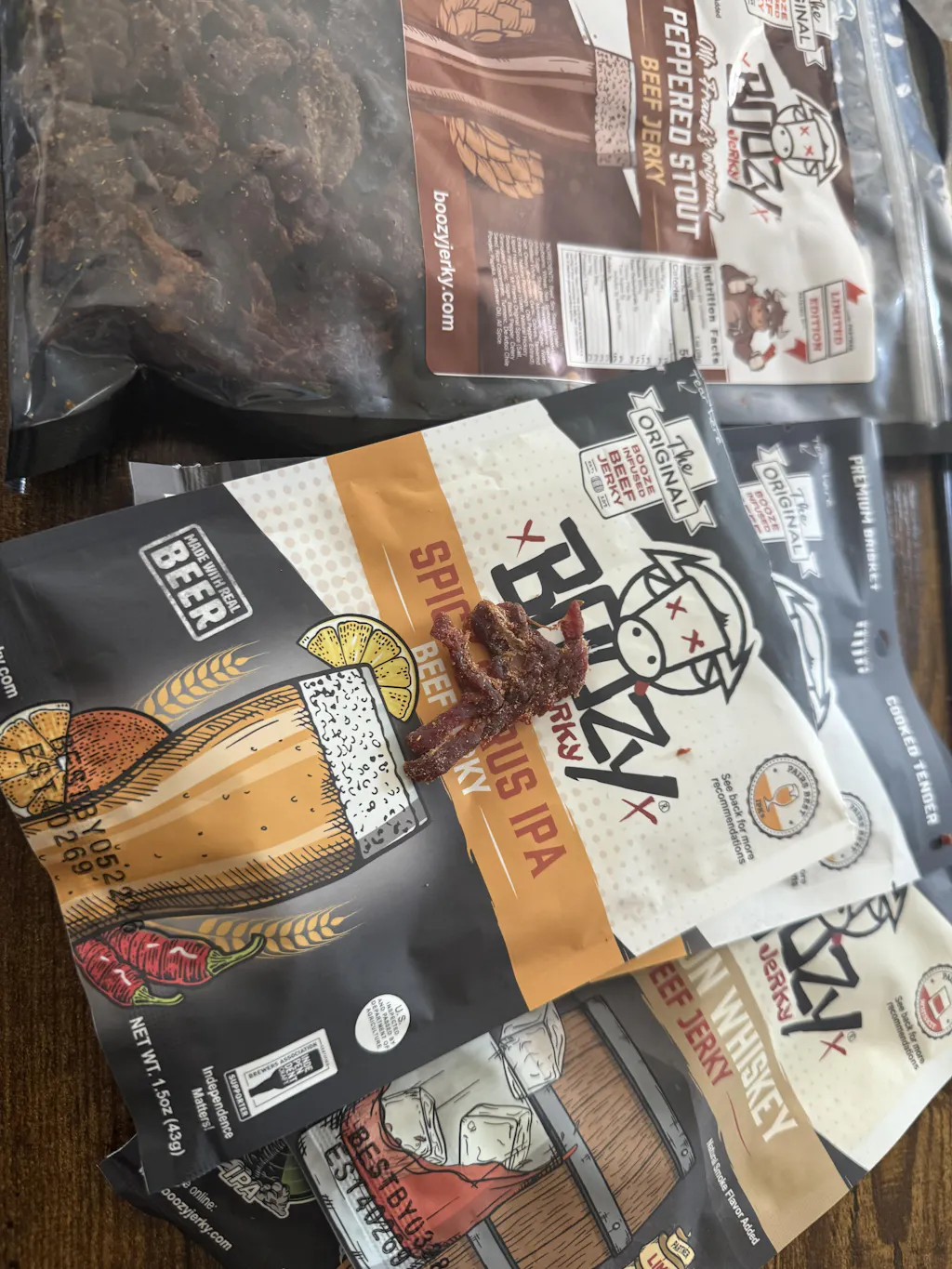 Although all of our brisket Jerky is Made with real craft booze, it won't get ya drunk, sorry.